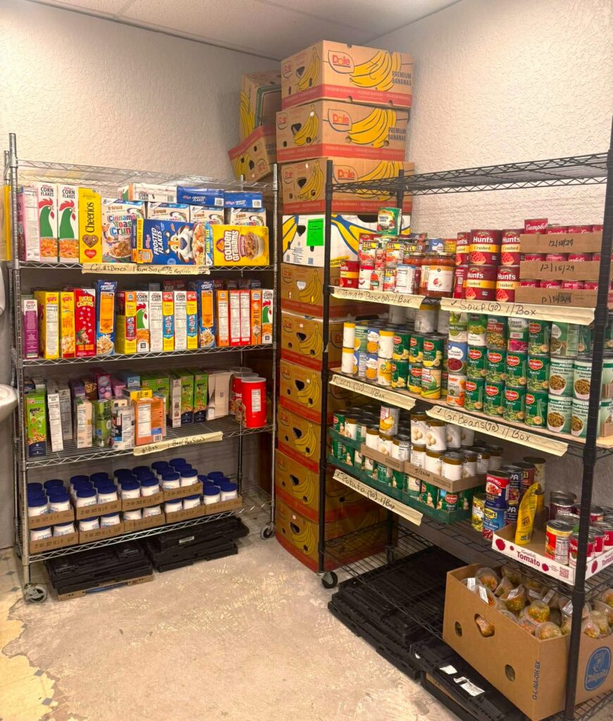 Today, the pantry serves 80–90 families each month, reaching approximately 250–330 individuals. Many of those served are elderly residents, individuals with low incomes, and some members of the unhoused community.